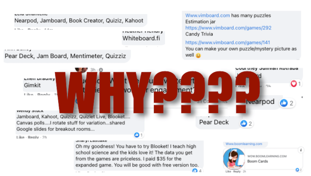 I am part of a Facebook support group for teachers that use a specific technology product. A question was posed to the group: